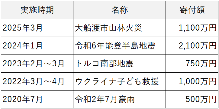 ※寄付額には当社からの寄付金を含む。