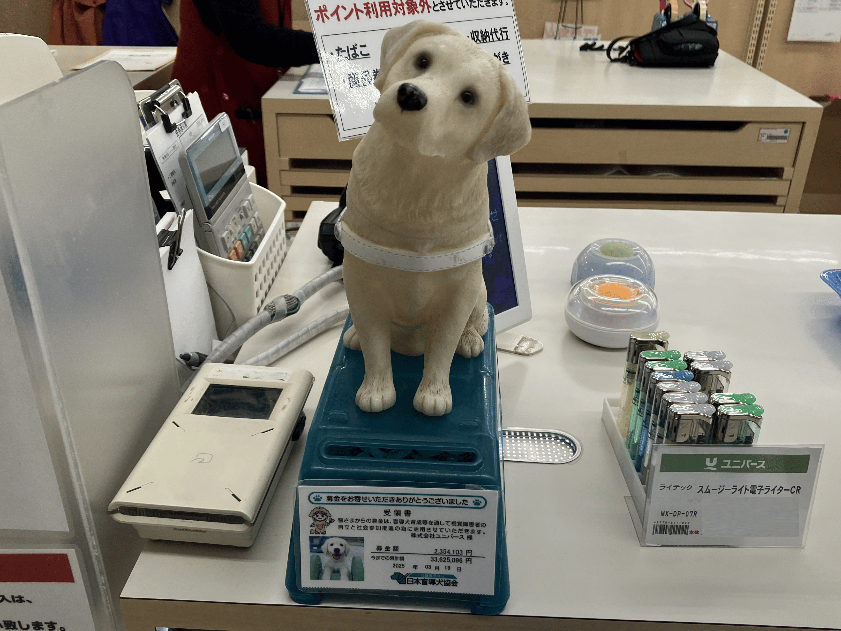 多くのお客様に支えられ、昨年度(2024年3月~2025年2月)は2,354,103円の募金が集まりました。